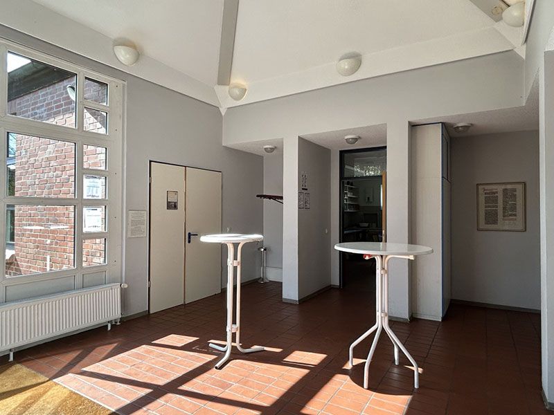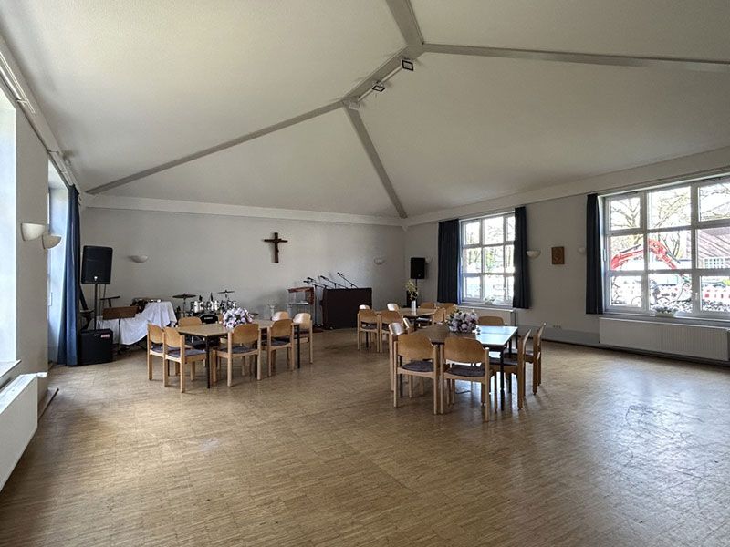 Das gesamte Gemeindehaus ist ebenerdig. Ein Behinderten WC ist vorhanden.