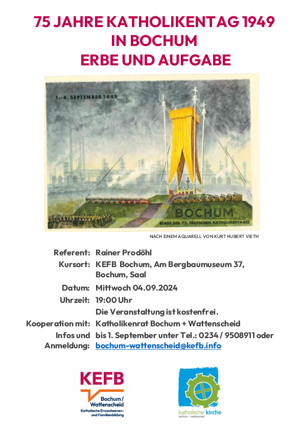 Ein Vortrag in der KEFB-Bochum und Wattenscheid (Katholische Erwachsenen- und Familienbildung) am Mittwoch 4. September 2024 um 19:00